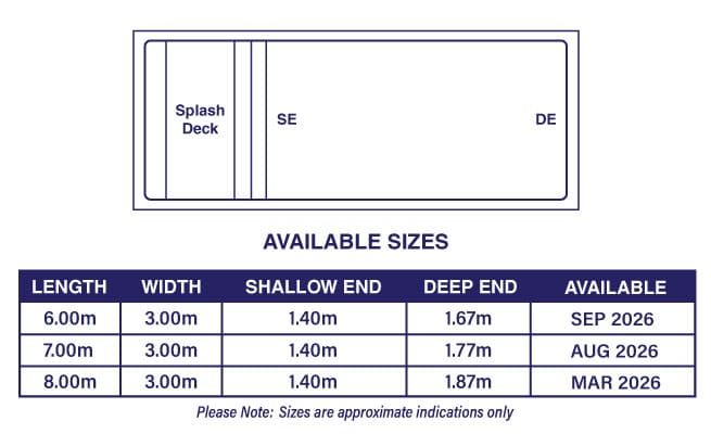 Introducing the Bay Series: the latest release from Factory Pools & Spas, where contemporary design meets effortless luxury. Designed with both family fun and adult relaxation in mind, the Bay Series features a striking splash deck and a generous full-width entry step, making access easy while maximising usable swimming space. Clean lines and an open, unobstructed layout create a pool that feels spacious, modern, and inviting. Whether it’s kids playing, entertaining friends, or unwinding at the end of the day, the Bay Series delivers versatility without compromise. Thoughtfully designed, beautifully proportioned, and built for real life — this is a pool the whole family will love.