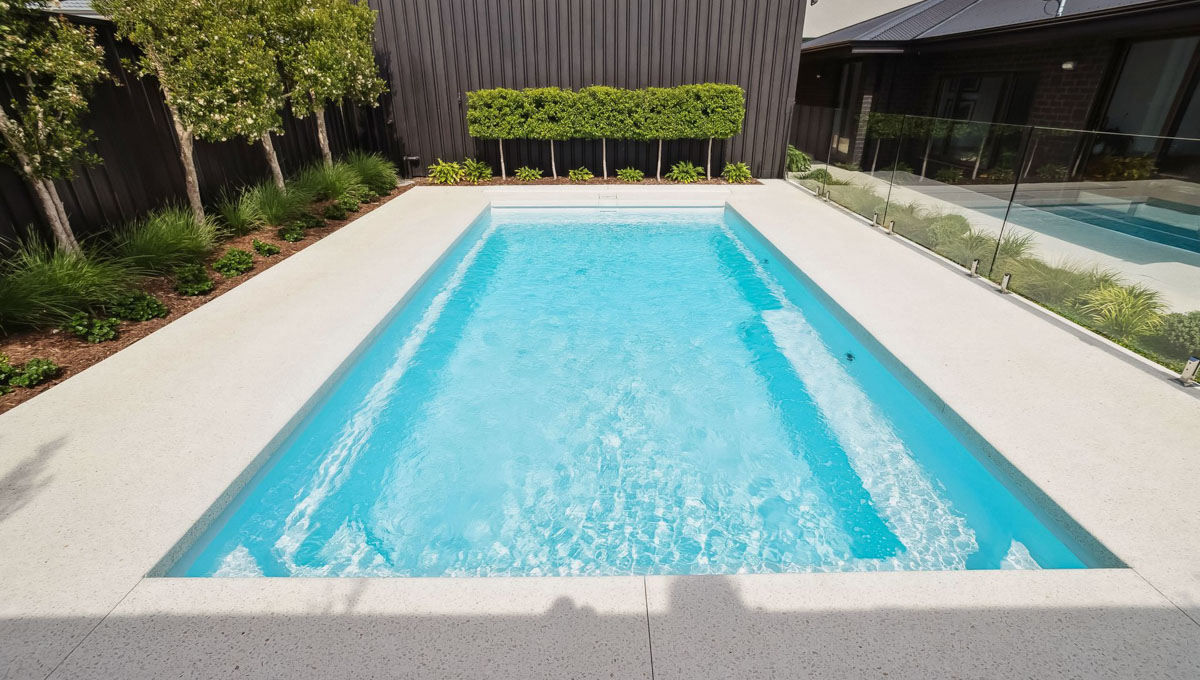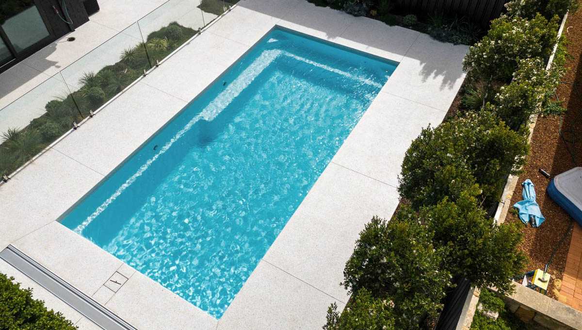 This 7.5m x 3.8m Billabong pool in Alpine White Shimmer adds a fresh, sophisticated touch to this Connolly backyard. With its spacious design, it’s perfect for family enjoyment, entertaining, or simply relaxing in style. The Alpine White Shimmer finish creates a crisp, clean water colour that sparkles in the sunlight, enhancing the pool’s modern appeal. A beautiful blend of function and aesthetics, this pool suits the relaxed yet refined coastal lifestyle of Connolly.