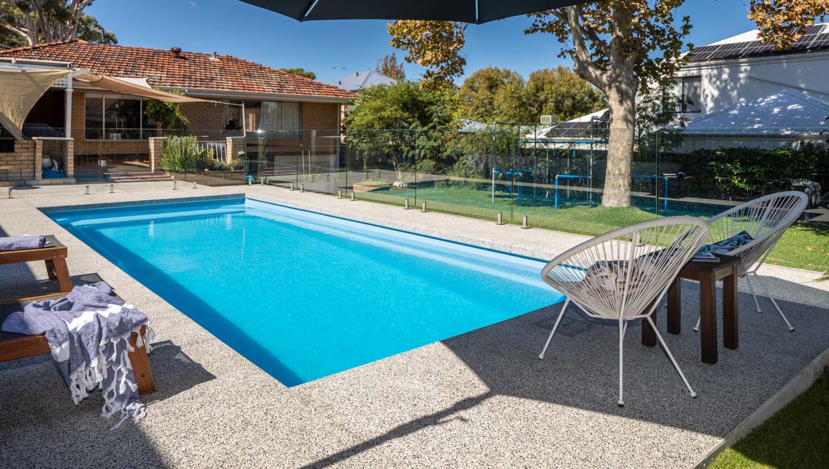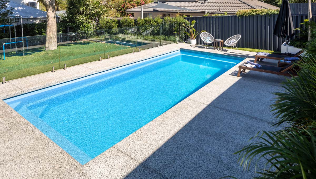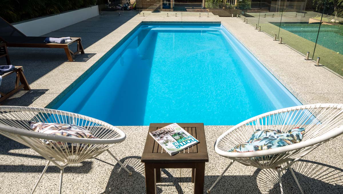 This pool installation masterfully employs a delightful contrast of colours to significantly enhance the aesthetic appeal of the backyard and Billabong pool. By thoughtfully utilising the available open space, swimmers are given the luxury to either unwind on one of the comfortable outdoor chairs or engage in a refreshing swim. The Sky Blue Shimmer pool colour perfectly complements the lighter shade of paver selected by the homeowners, creating a visually soothing oasis that invites relaxation. Our meticulously designed 10.5m x 3.8m pool configuration is ideally suited for large backyards, seamlessly integrating with spaces that allow the pool’s beauty to truly stand out. This design not only maximises the functionality of the outdoor area but also elevates the overall home aesthetic, making it a perfect retreat for both family and friends to enjoy.