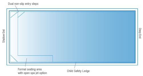 The Billabong swimming pool range comprises ten lengths and widths with options to suit all requirements. From a supersized 10.5-metre to a slimline 4.2-metre, this swimming pool design is perfect for today’s busy lifestyle.