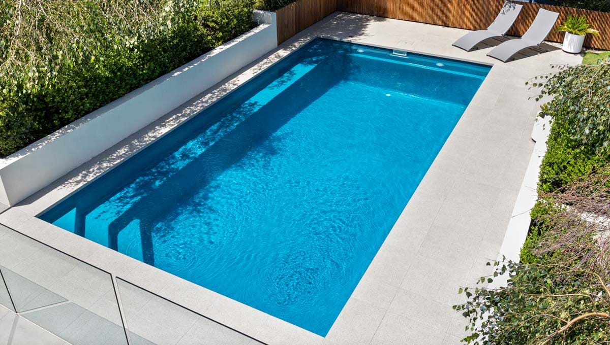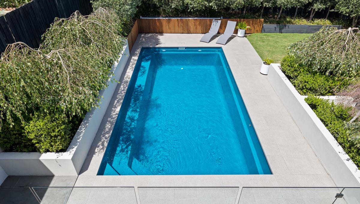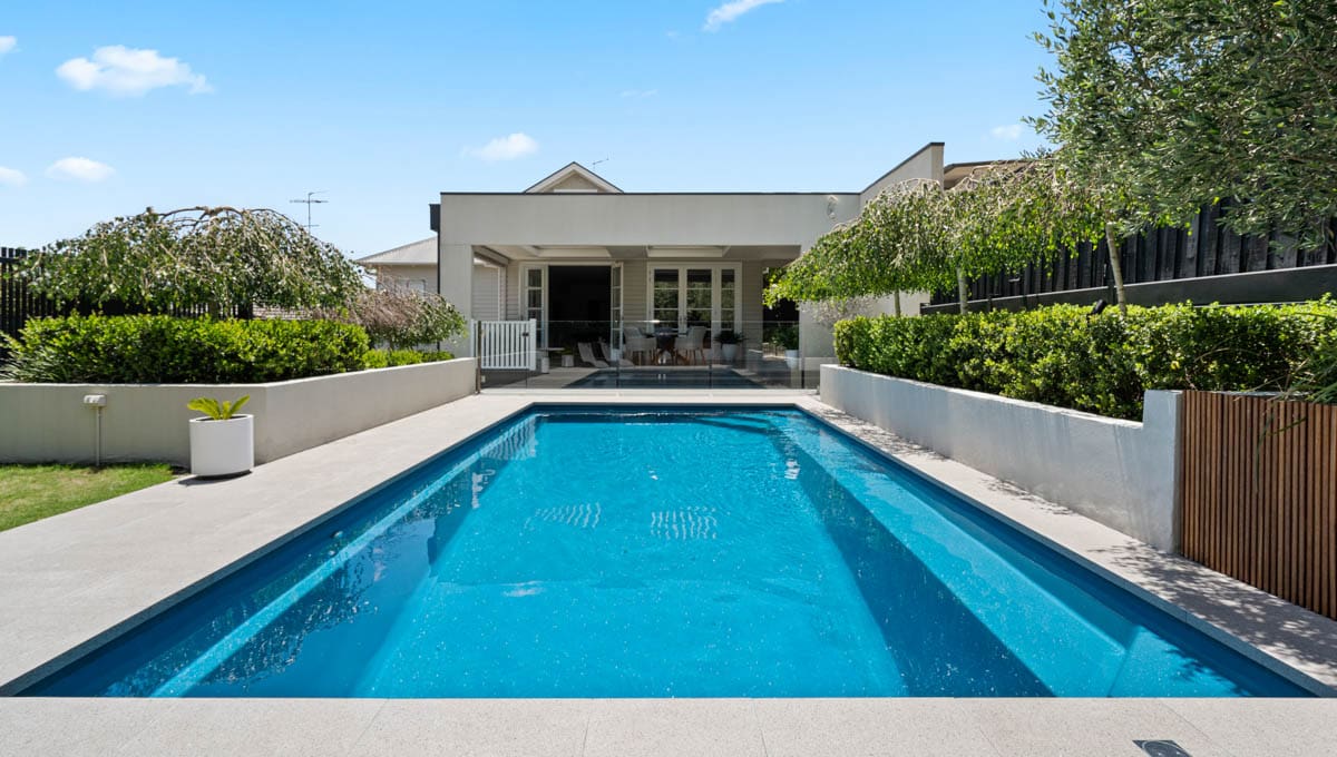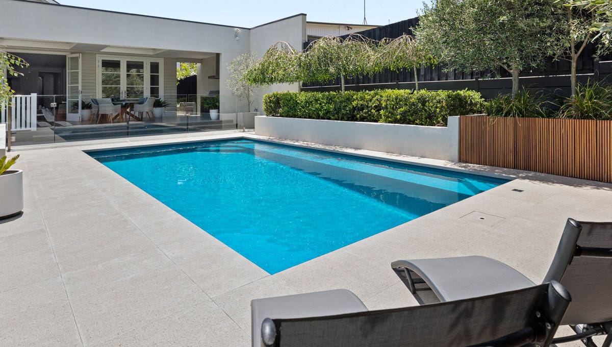 This Brampton 10.1m x 4.4m in Royal Jade Shimmer was recently installed at a home in Victoria. Sleek, modern and practical, the Brampton is designed for both relaxation and active use. Its clean lines and light-reflective finish make it a stunning focal point, while the size offers plenty of room for the family to swim, unwind and enjoy the outdoors—all from the comfort of home.