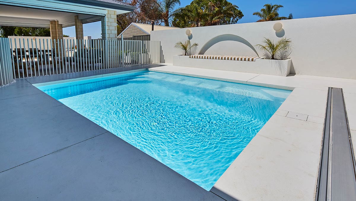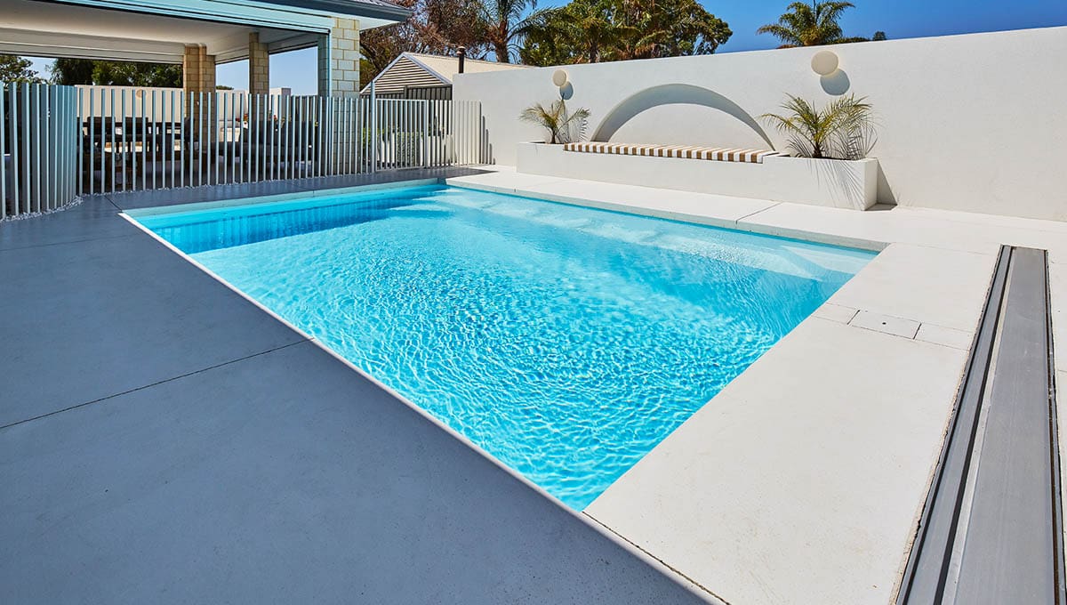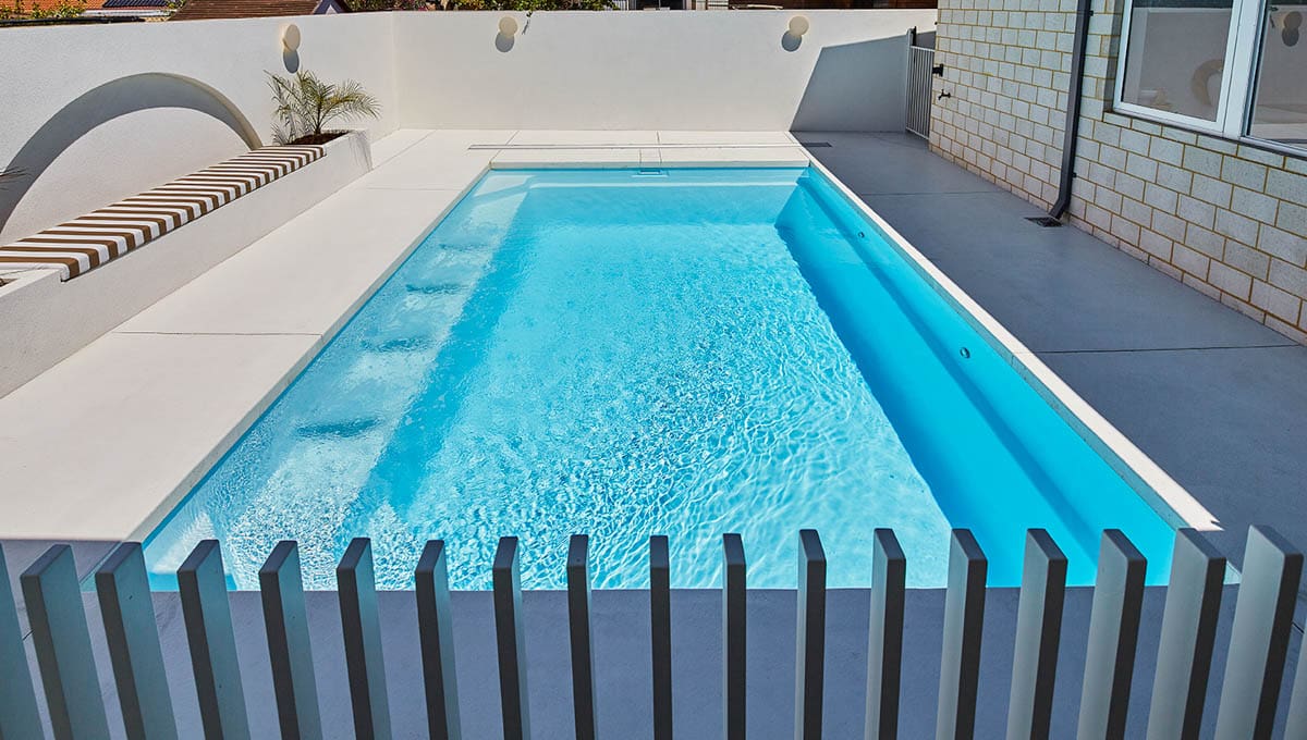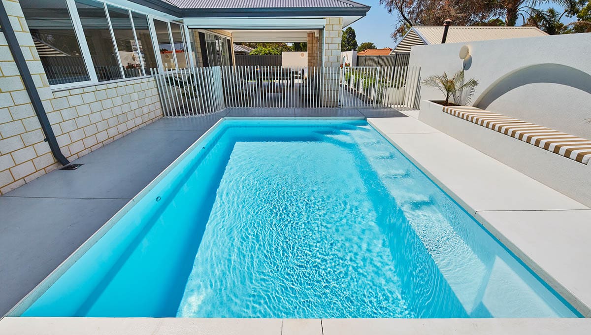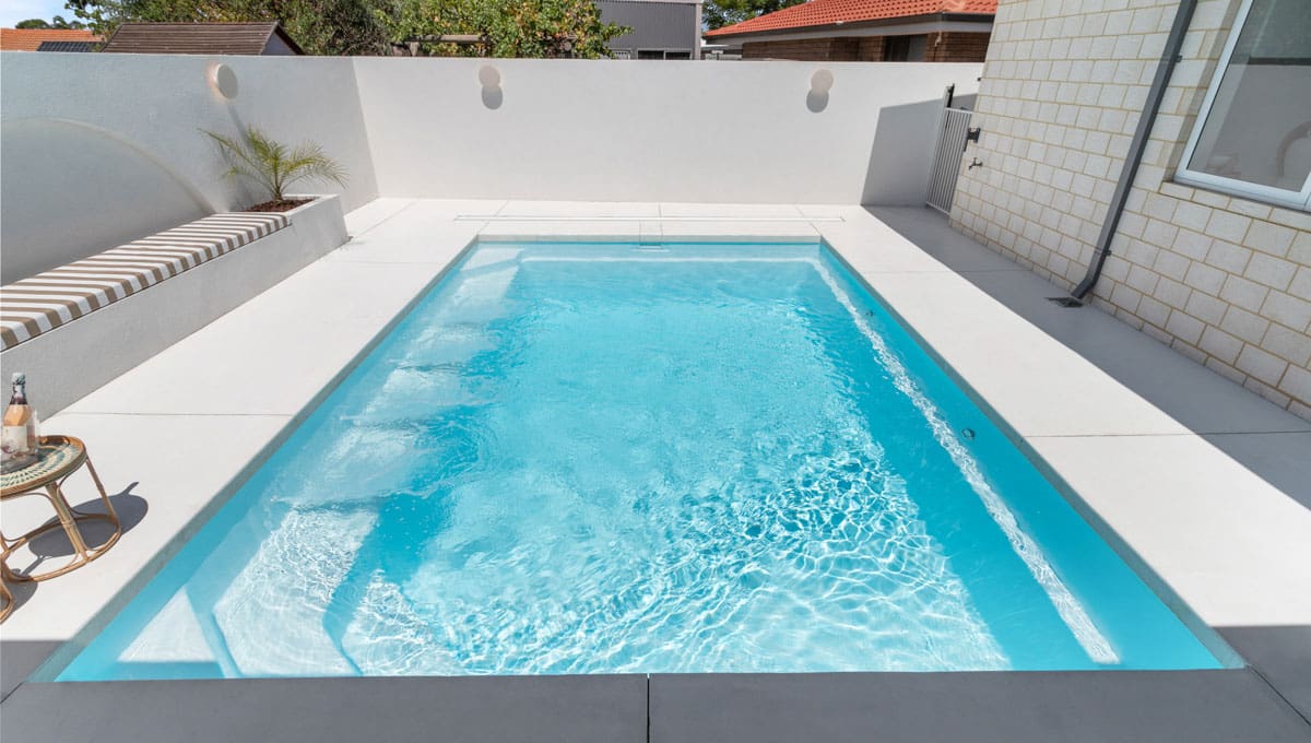 This Brampton 6.2m x 4.4m in Alpine White Shimmer was recently installed at a home in Halls Head. Sleek, modern and practical, the Brampton is designed for both relaxation and active use. Its clean lines and light-reflective finish make it a stunning focal point, while the size offers plenty of room for the family to swim, unwind and enjoy the outdoors—all from the comfort of home.