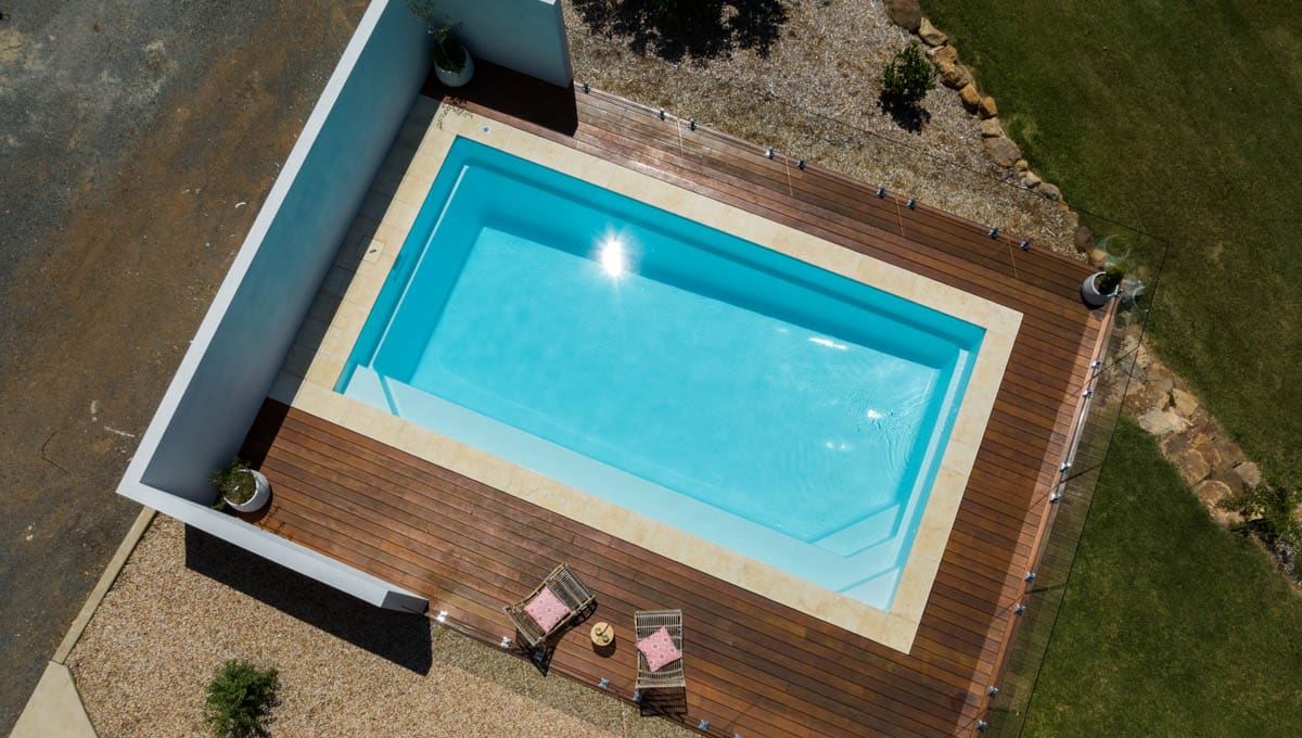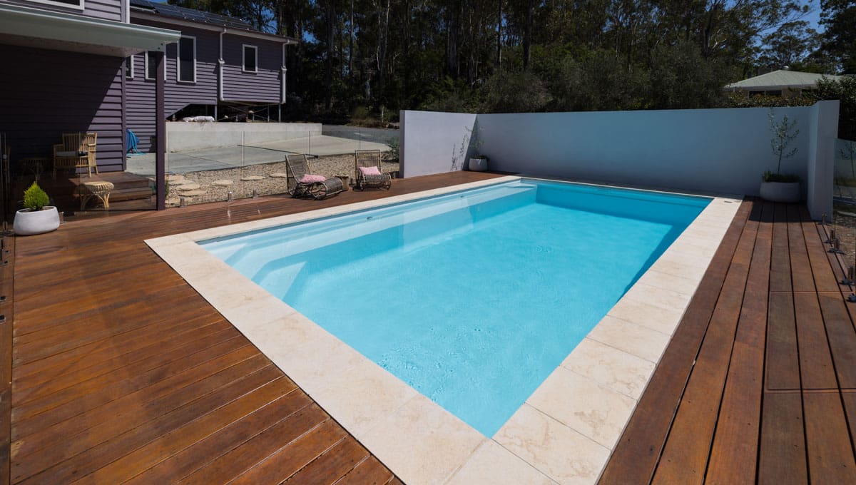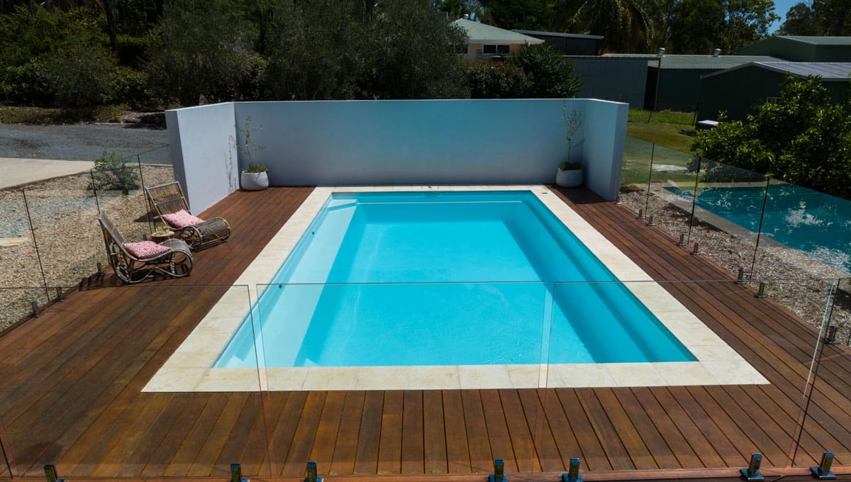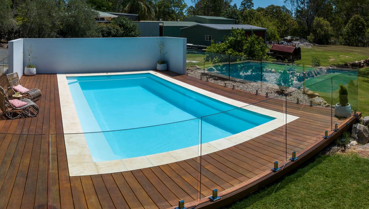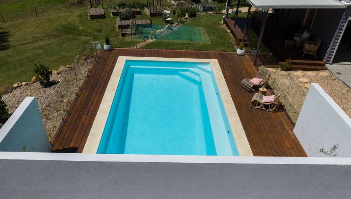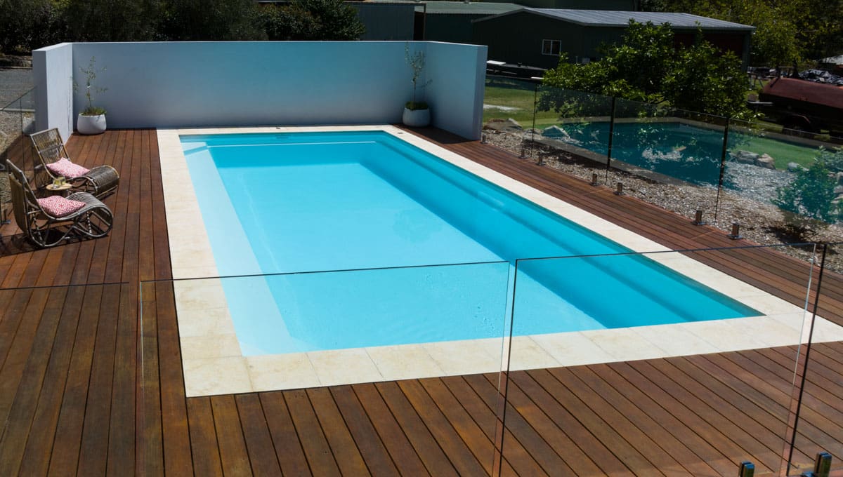 Our Brampton pool in our classic Alpine White Shimmer is the perfect colour for this Jimboomba home. Perfectly contrasted against the earth tones of the backyard, this massive 8.2m x 4.4m is ideal for splashing around and for cooling off. A bench seat running across the long side of the pool allows you to kick back and relax. We’re glad we were able to bring another local Jimboomba family’s dream of owning a fibreglass pool to life!