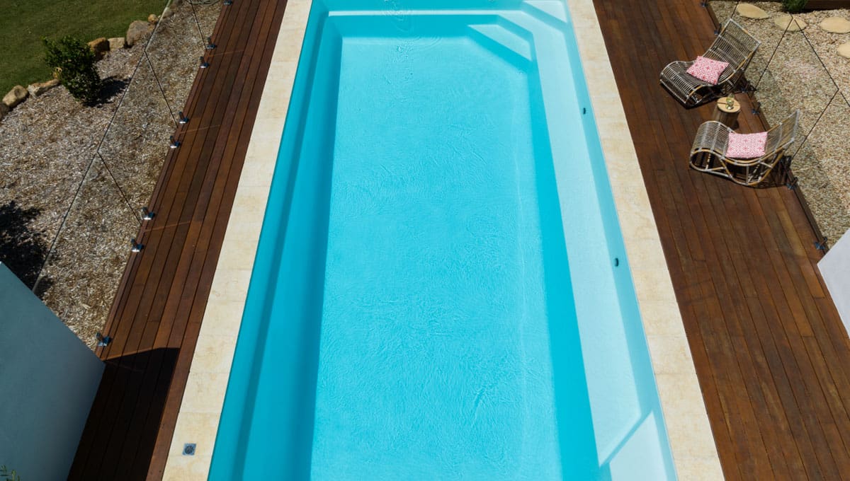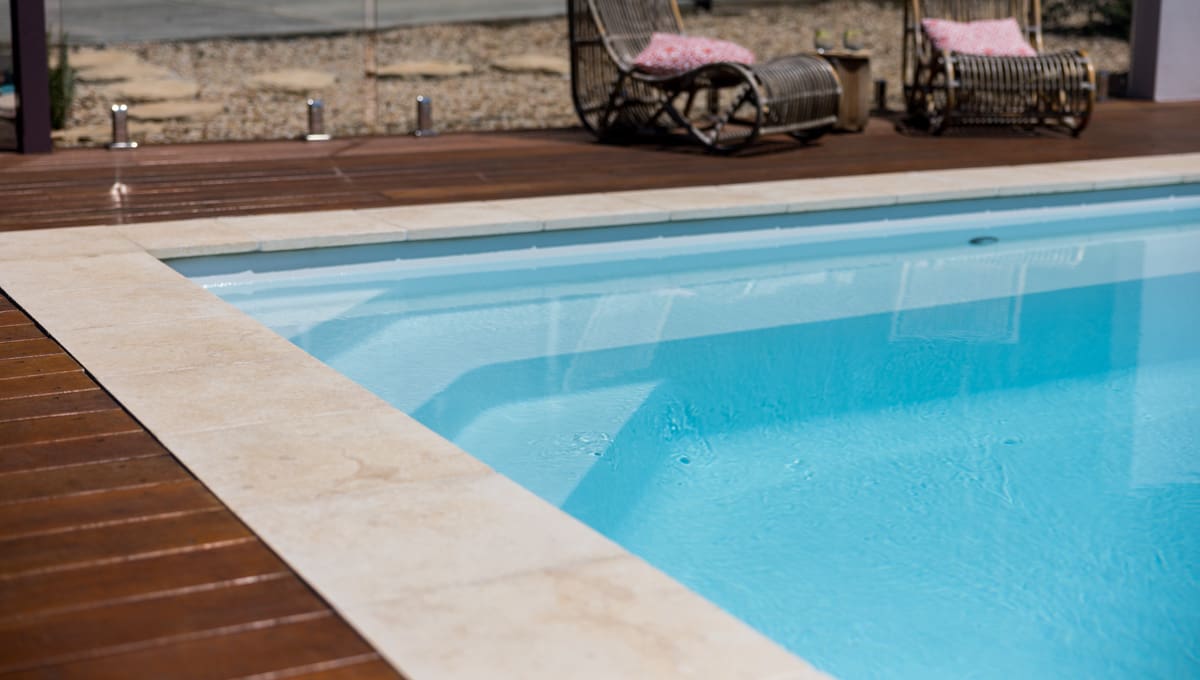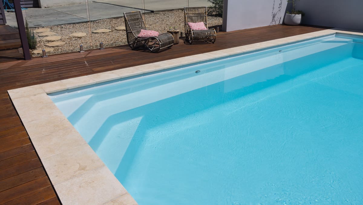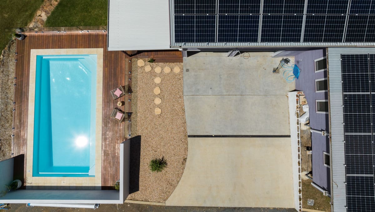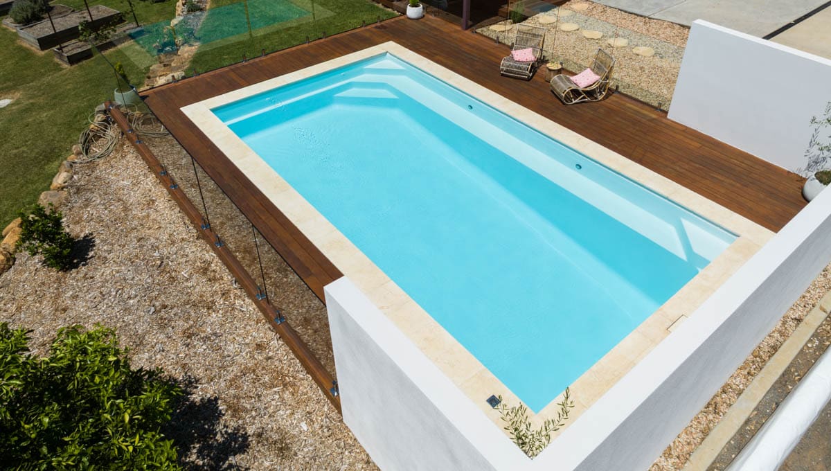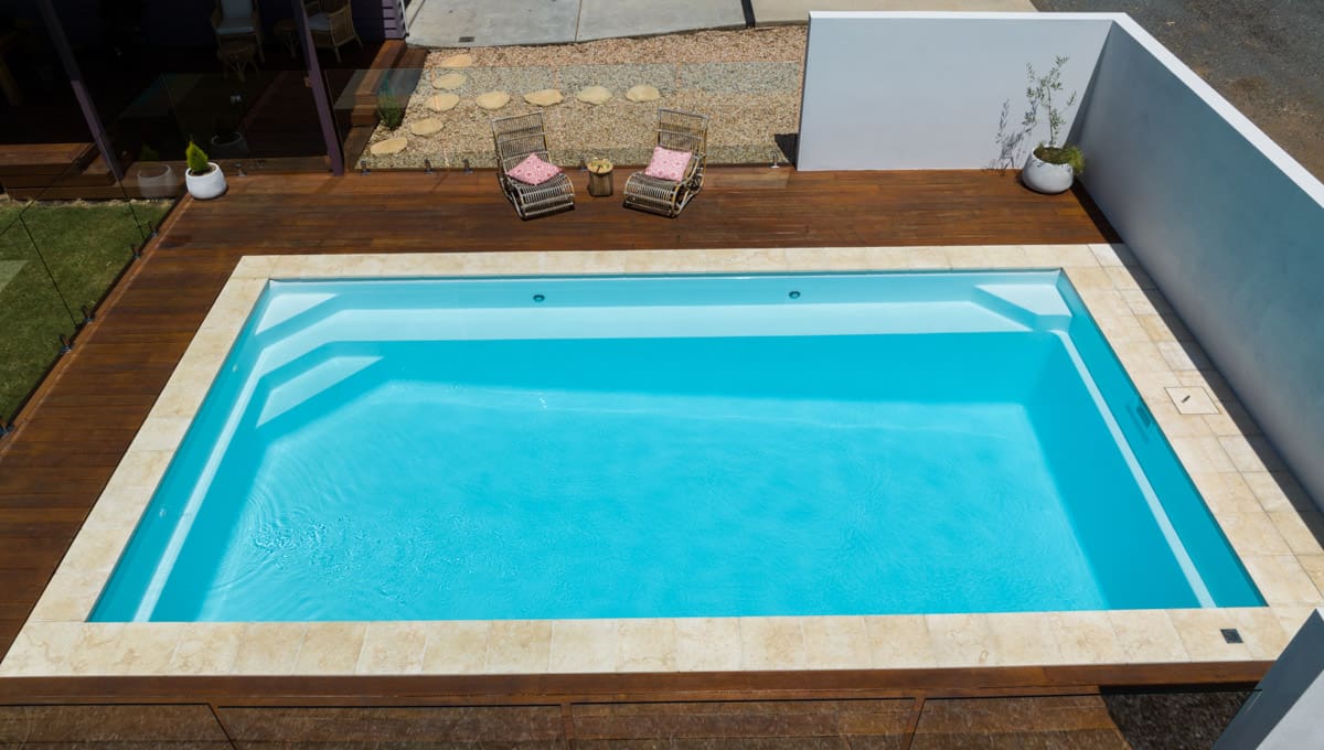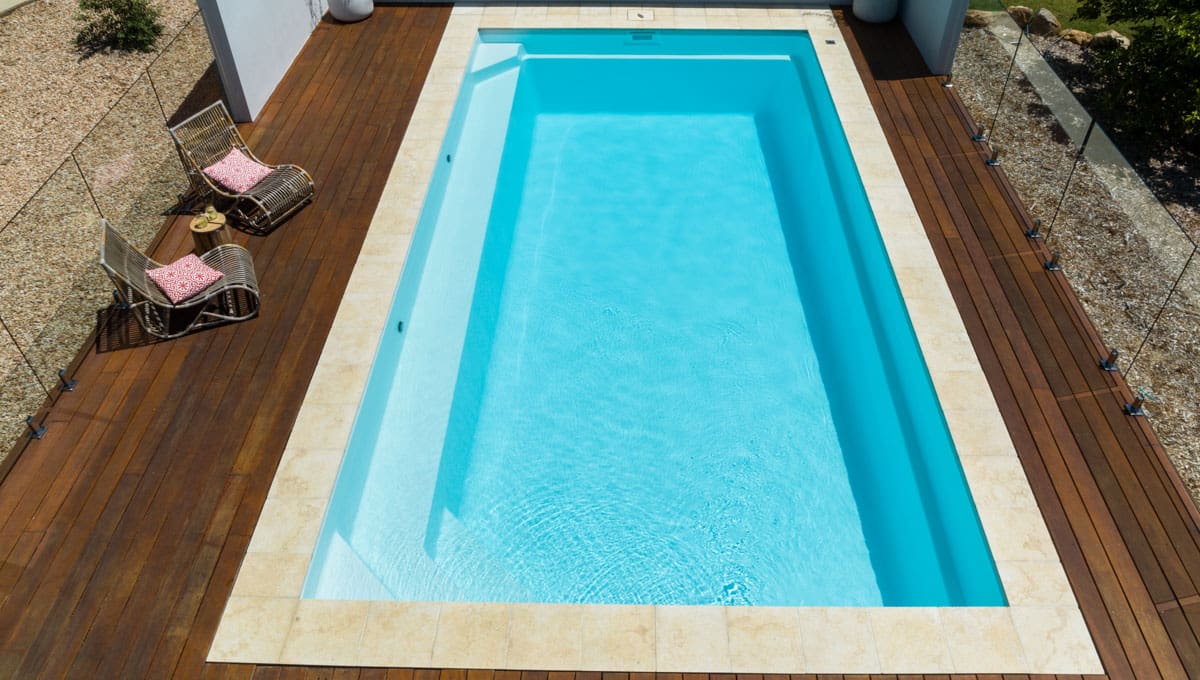 Our Brampton pool in our classic Alpine White Shimmer is the perfect colour for this Jimboomba home. Perfectly contrasted against the earth tones of the backyard, this massive 8.2m x 4.4m is ideal for splashing around and for cooling off. A bench seat running across the long side of the pool allows you to kick back and relax. We’re glad we were able to bring another local Jimboomba family’s dream of owning a fibreglass pool to life!