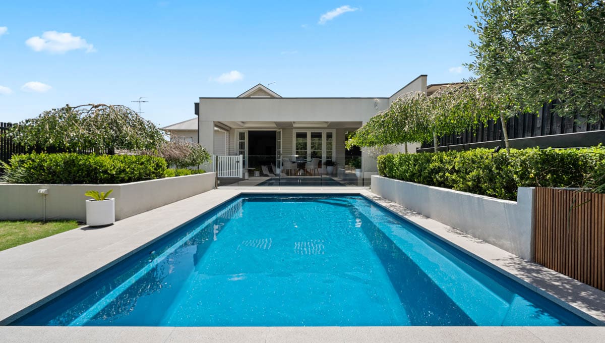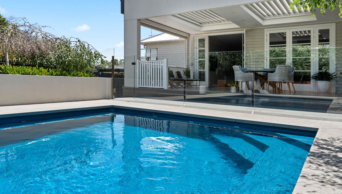 Our Brampton 8.2m x 4.4m was installed at a home in Victoria, showcasing our Royal Jade Shimmer colour! The Brampton is one of our most popular pools, with sleek lines and lots of swimming space, you and the family can enjoy your very own private getaway, in the privacy of your own home.