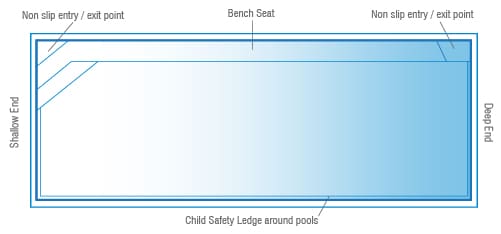 It is an uncomplicated design that offers dual access points, ensuring easy positioning in most outdoor spaces, and a bench seat running the full length of the pool. This is a fantastic feature when having to consider the pool’s proximity to the house or other structures that are close by.
