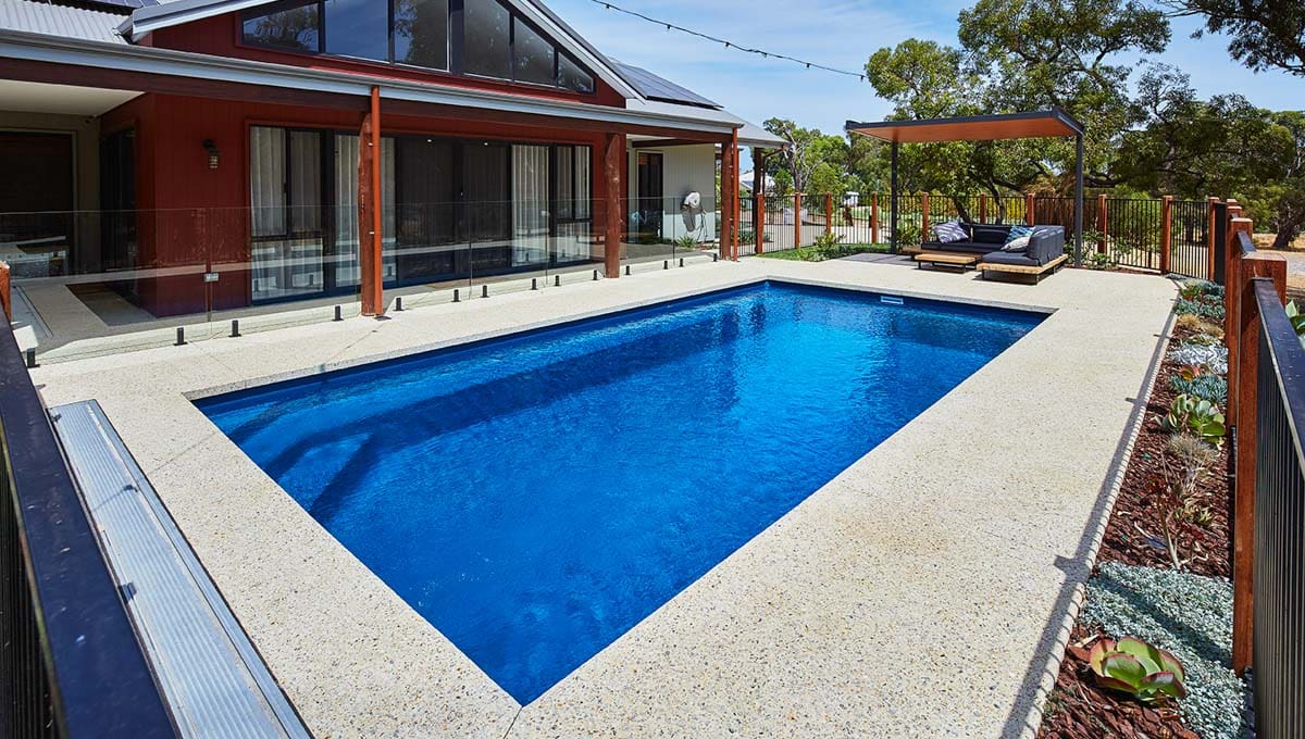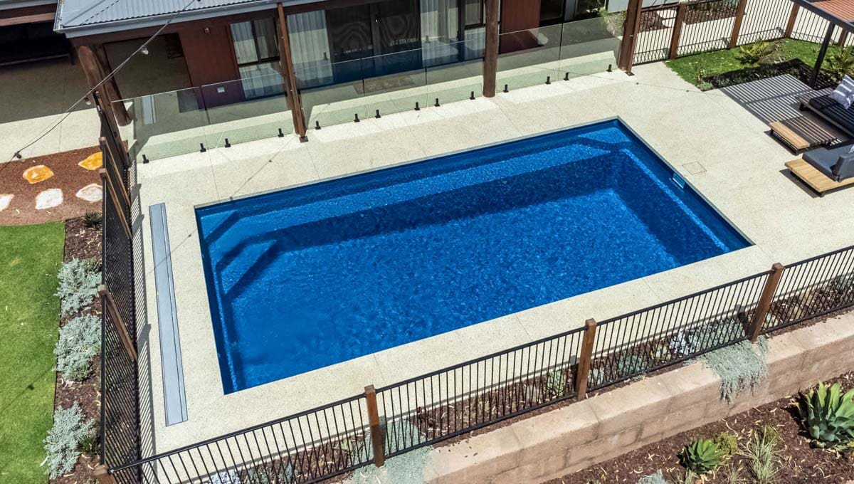 View our recently installed Brampton pool in a 8.2m x 4.4m configuration, and featuring our Royal Jade Shimmer colour. We love the richness that Royal Jade Shimmer gives its surroundings, and recommend this colour if you are aiming for a big contrast to your backyard. Trust us, it looks great! We’re so glad we were able to bring another Baldivis family their dream of a pool!
