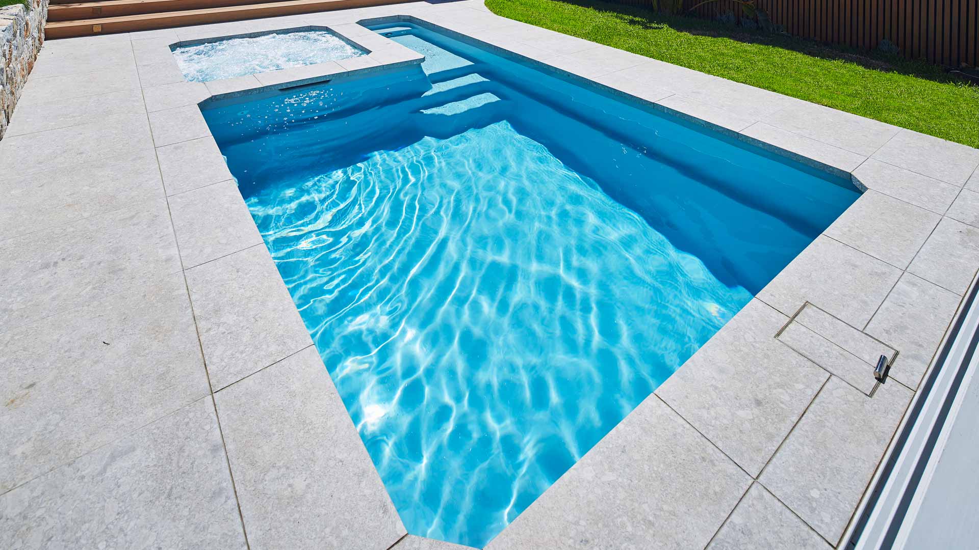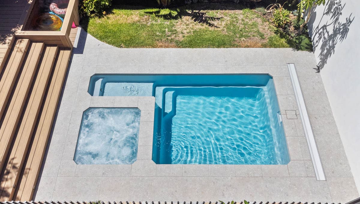 Designed with dual spillway’s the pool & spa can run simultaneously eliminating any additional power costs, alternatively, they can be run independently. The generous swimming area has been designed to be totally un-obstructed, which is ideal for swimming laps and active families. There is no other pool that can offer all of these features. With its square lines, designer looks we are sure your whole family will love it.