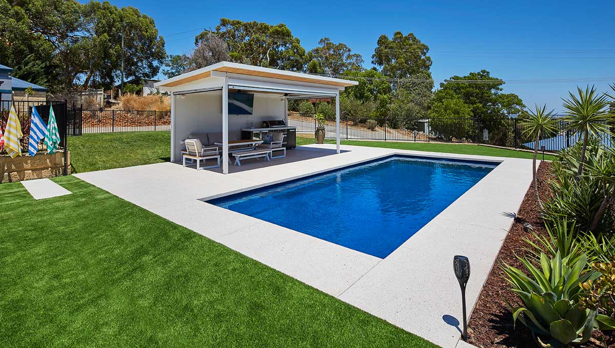 The Sunseeker 10.2m x 4.4m Royal Jade Shimmer Pool is a luxurious, contemporary design crafted for both relaxation and style. With generous dimensions of 10.2 metres by 4.4 metres, it provides ample space for swimming, lounging, and entertaining. Finished in a stunning Royal Jade Shimmer, the water sparkles with rich, jewel-toned hues, creating a serene and inviting atmosphere. Perfect for modern outdoor living, this pool blends elegance with functionality, making it a standout feature in any backyard oasis.