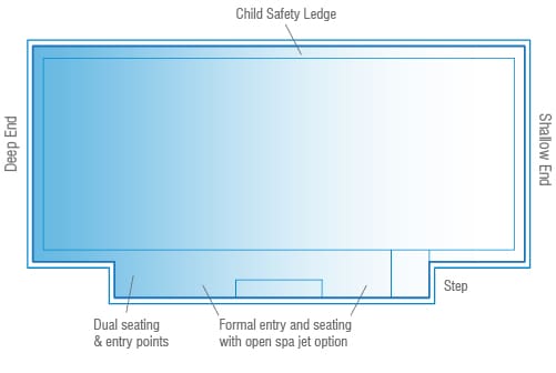 Square corners allow for seamless 90-degree paving, while great water depth makes it ideal for diving practice.